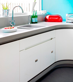 We also offer Corian and Mistral under mounted sinks, which combine the worktop and sink together appearing as a single unit, for that extra quality, look and feel.